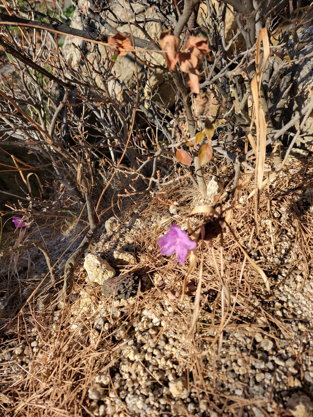 울산바위 가는 길 양지바른 곳에 철 모르는 참꽃이